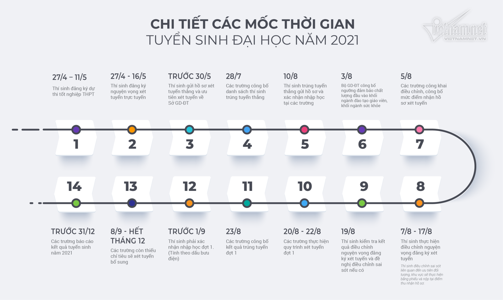 Chi tiết các mốc thời gian tuyển sinh đại học năm 2021