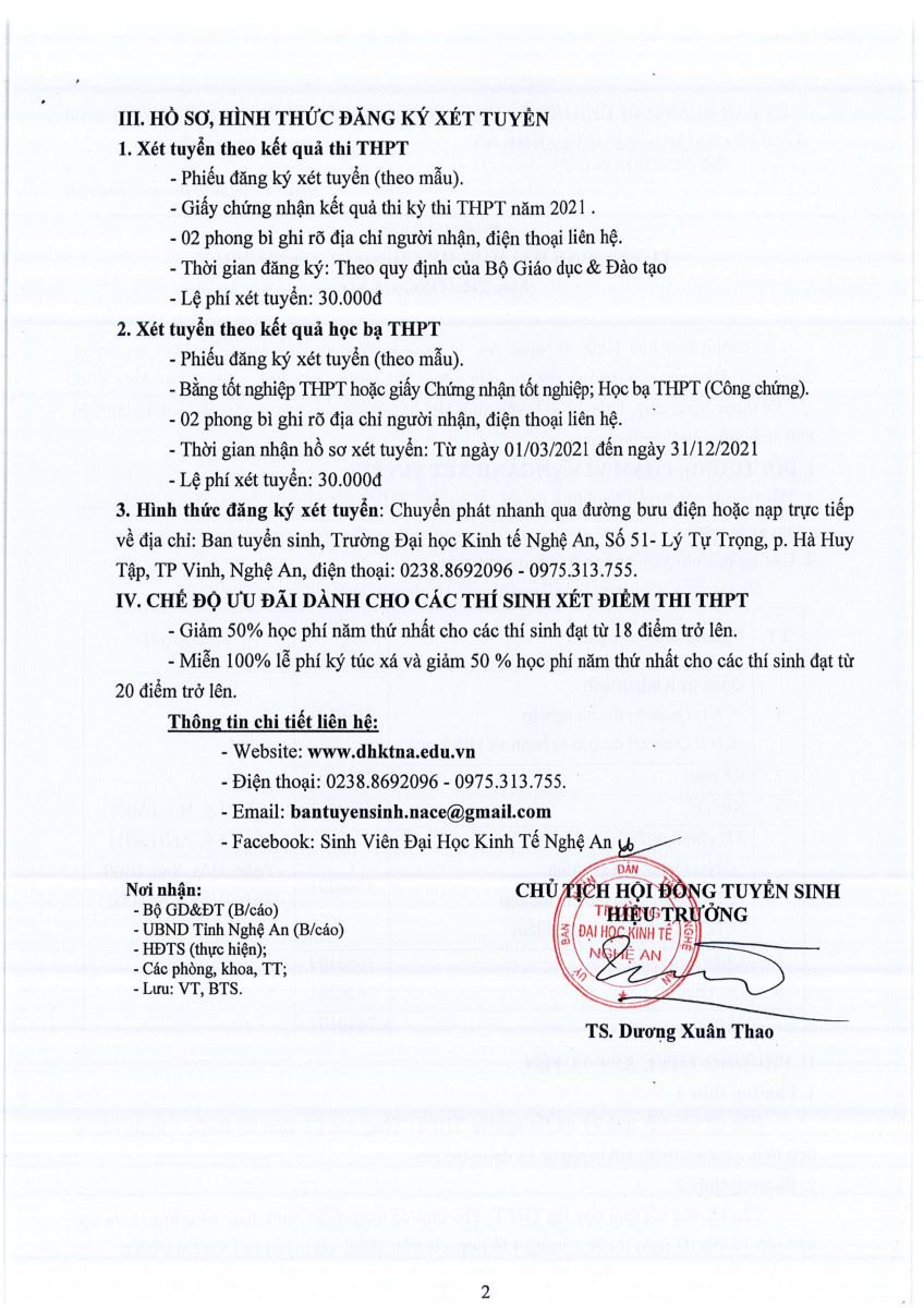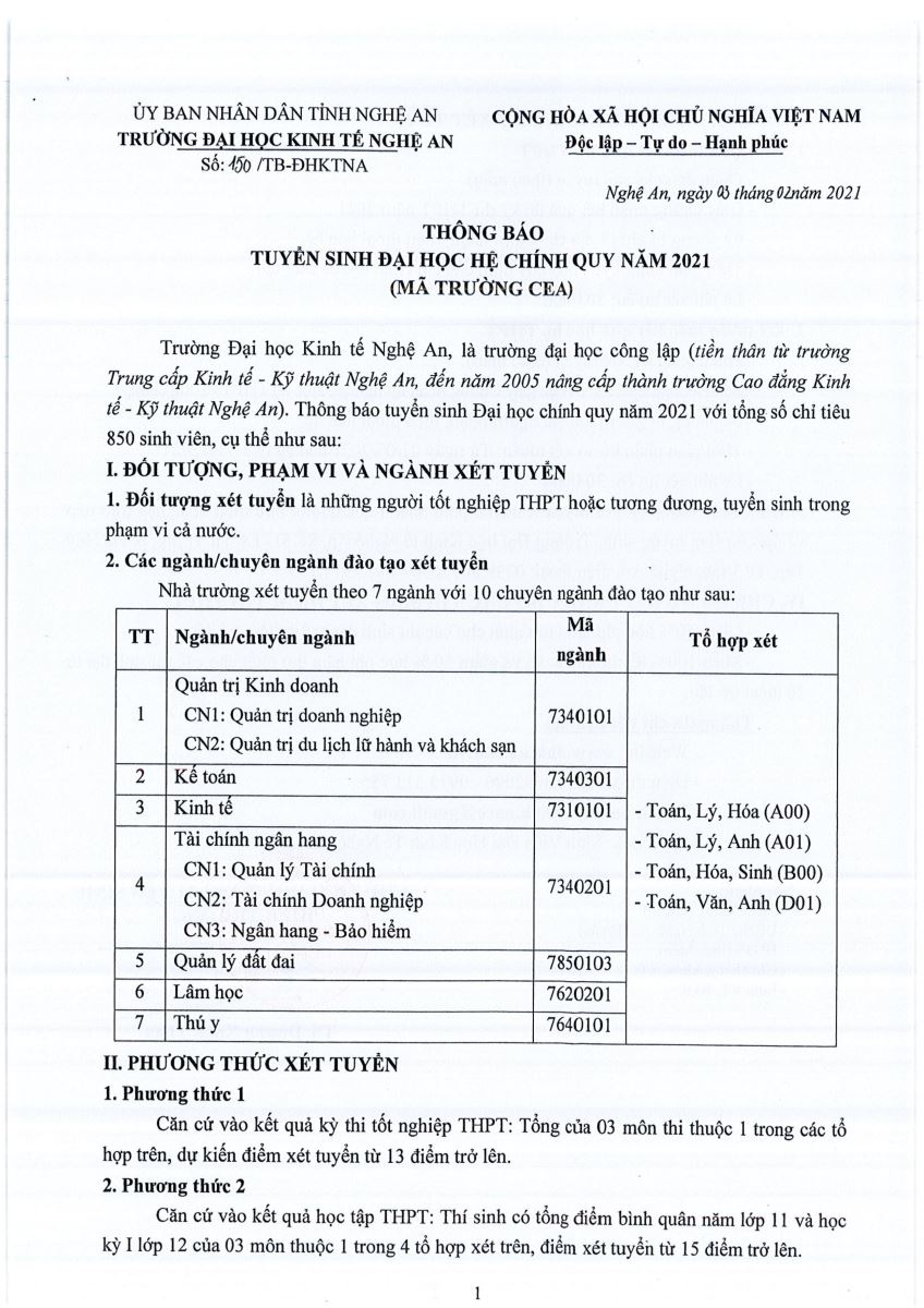 Thông tin tuyển sinh Đại học Chính quy năm 2021 14/03/2021 03:21 3661 lượt xem Trường Đại học Kinh tế Nghệ An thông báo tuyển sinh Đại học Chính quy các ngành năm 2021 cụ thể như sau: