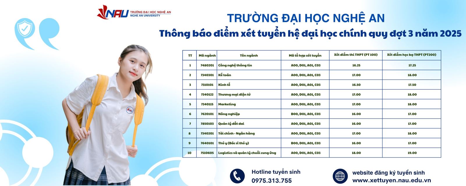 Hoặc nộp trực tiếp tại: Trung tâm Tuyển sinh & Truyền thông – Trường ĐH Nghệ An, 51 Lý Tự Trọng, Vinh Phú, Nghệ An.