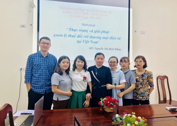 Thực hiện kế hoạch nghiên cứu khoa học của giảng viên đã đăng ký từ đầu năm học 2018 - 2019, chiều ngày 29/3/2019, Tổ Ngân hàng – Bảo hiểm, trực thuộc Khoa Tài chính – Ngân hàng, Trường Đại học Kinh tế Nghệ An trang trọng tổ chức buổi Seminar học thuật với chủ đề: “THỰC TRẠNG VÀ GIẢI PHÁP QUẢN LÝ THUẾ ĐỐI VỚI THƯƠNG MẠI ĐIỆN TỬ TẠI VIỆT NAM” do tác giả Th.s Nguyễn Thị Bích Hằng – giảng viên tổ Ngân hàng Bảo hiểm trình bày.