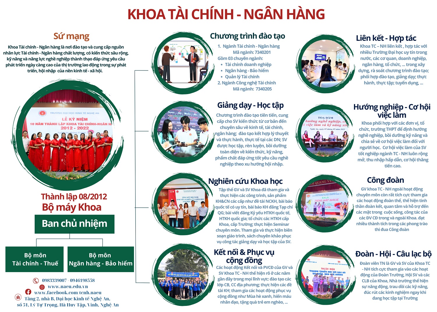 Trong suốt quá trình hoạt động, tập thể cũng như cá nhân cán bộ, giảng viên của Khoa đã nhận được nhiều bằng khen, giấy khen về thành tích trong lĩnh vực giảng dạy, nghiên cứu khoa học và hoạt động đoàn thể. Đây là những động lực để khoa Tài chính – Ngân hàng tiếp tục nỗ lực phát triển mạnh hơn nữa trong tương lai góp phần quan trọng vào sự nghiệp Giáo dục – Đào tạo và phát triển kinh tế - xã hội của đất nước nói chung và trên quê hương Nghệ An nói riêng./.