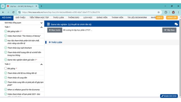 Học phần Lý thuyết tài chính – tiền tệ trên LMS tại NAU