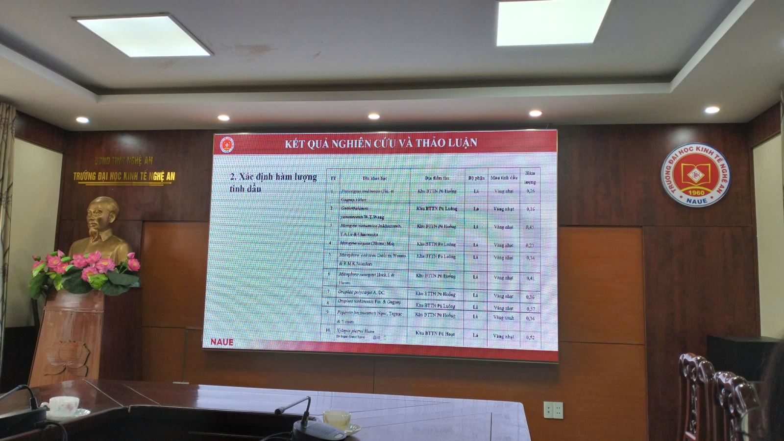 Theo Quyết định số 1379/QĐ-ĐHKTNA ngày 05/11/2024, Sáng ngày 27/11/2024, tại Trường Đại học Kinh tế Nghệ An đã diễn ra buổi nghiệm thu đề tài Khoa học trọng điểm năm 2024 của TS. Đỗ Ngọc Đài chủ nhiệm và các cộng sự PGS.TS. Lê Thị Hương, TS. Võ Thị Dung, TS. Nguyễn Công Trường, ThS. Trần Thị Thúy Nga, CN. Nguyễn Thị Mai. Tên đề tài “Nghiên cứu tính đa dạng loài và thành phần hoá học, hoạt tính sinh học của một số loài thuộc họ Na (Annonacea) ở Thanh Hoá và Nghệ An”.