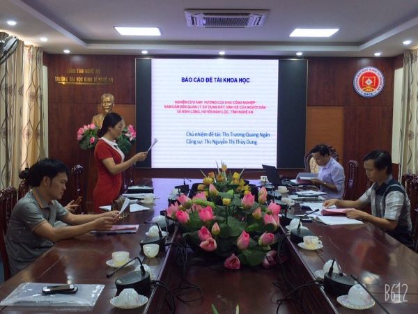 Chiều ngày 02 tháng 10 năm 2019, tại Phòng họp 1 đã diễn ra buổi thẩm định thuyết minh đề tài nghiên cứu khoa học cấp trường do ThS. Trương Quang Ngân làm chủ nhiệm đề tài. Đề tài “Nghiên cứu ảnh hưởng xây dựng và phát triển khu công nghiệp Nam Cấm đến quản lý sử dụng đất, sinh kế của người dân xã Nghi Long, huyện Nghi Lộc, tỉnh Nghệ An” thuộc Lĩnh vực nghiên cứu Nông Lâm Ngư.