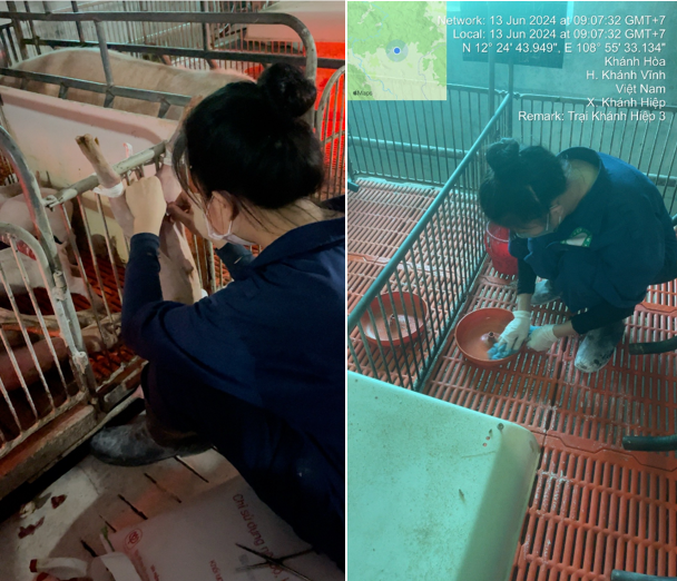 Trong thời gian thực tập tại Trại heo nái Khánh Hiệp 3, điều làm tôi xúc động nhất là sự quan tâm sâu sắc, sự chỉ bảo tận tình của các anh  kỹ sư và  các anh chị công nhân. Trong suốt 3 tháng thực tập, các anh chị đã luôn quan tâm, giúp đỡ, hỏi han, động viên và chỉ bảo tôi từng bước đi đầu tiên, các anh chị đã coi tôi như người em luôn tạo mọi điều kiện thuận lợi để tôi có thể phát huy hết năng lực của mình. Ở trại heo nái khánh hiệp 3 tôi được làm quen, tiếp xúc và học hỏi rất nhiều kinh nghiệm mà tôi chưa từng có được khi ngồi trên giảng đường đại học. Tôi từ cô sinh viên với biết bao mơ mộng, vô tư, giờ đây phải nhập cuộc thích nghi từ giờ giấc đến trang phục, từ lời ăn tiếng nói, từ thái độ làm việc.  Đến với bên đẻ, tôi được thực tập ở bộn phận đứng chuồng rồi học đỡ đẻ sau đấy tôi được chuyển sang tổ thú y học bấm thiến, ghép heo, điều trị, tách lọc heo, xuất heo... được anh Thủy kỹ sư phụ trách hướng dẫn. Khi làm việc cùng anh, tôi có những nỗi lo lắng của riêng mình, lo lắng về công việc được giao có hoàn thành một cách tốt nhất, lo lắng về cách ứng xử có được hài lòng hay lo lắng anh Thủy sẽ không thích một đứa vốn không giỏi ăn nói như mình. Tất cả đều có trong suy nghĩ của tôi lúc đó. Tôi đã cố gắng và tự nhủ bản thân dù có mệt đến đâu cũng phải nỗ lực lên, cho tới khi tiếp xúc làm việc với anh, những cảm xúc trở nên tích cực hơn. Tôi cảm thấy rất vui khi được anh quan tâm, chỉ bảo, hướng dẫn rất tận tình, anh luôn tạo môi trường làm việc vui vẻ cho mọi người điều đấy tăng thêm động lực để cố gắng hoàn thành tốt nhiệm vụ. Ngày tháng trôi qua, ngày tháng thực tập được tô điểm thêm, được thú vị hơn khi tôi chuyển qua làm việc bên tổ phối, và ở đây tôi được anh Đạt kỹ sư và tất cả các anh bên tổ phối chỉ bảo, hướng dẫn, giúp đỡ tôi rất nhiều và cũng không thể thiếu những cuộc đùa vui trêu nhau để quên đi cái mệt.