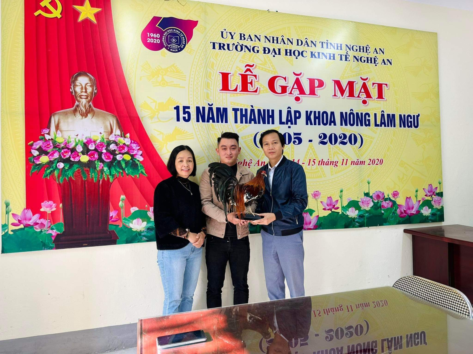 Không phải là ngày thành lập trường cũng không phải là ngày nhà giáo Việt Nam nhưng em Trần Kim Hoàng Anh là cựu sinh viên lớp Đại học Thú Y K4 vẫn về lại trường cũ tặng một món quà kỷ niệm đầy ý nghĩa tri ân các thầy cô giáo đã từng dạy và định hướng cho em trên bước đường sự nghiệp của mình. Đây là tác phẩm và sản phẩm chuyên môn sau khi tốt nghiệp chuyên ngành Thú Y ở trường Đại học Kinh Tế Nghệ An. Hiện nay em đã đứng vững trên thị trường với ngành nghề đúng chuyên môn Thú y: “Làm tiêu bản các sản phẩm thú rừng, thú cưng, chim...”. Qua đây em muốn gửi lời chúc sức khỏe đến tất cả các thầy cô đã từng định hướng và dìu dắt em. Em cũng muốn qua bộ môn Thú Y và qua Khoa Nông Lâm Ngư định hướng giới thiệu những bạn sinh viên chuyên ngành Thú Y có cùng chí hướng và đam mê đến với việc làm tiêu bản này để em hướng dẫn giúp đỡ.