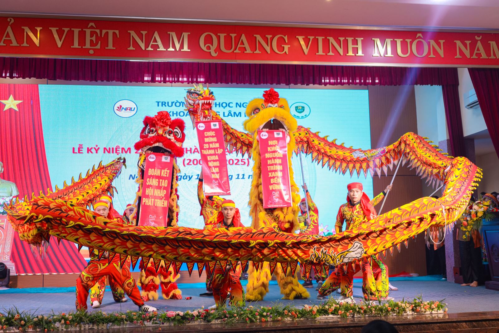 Tiết mục múa Lân Sư Rồng chào mừng lễ kỷ niệm 20 năm thành lập khoa