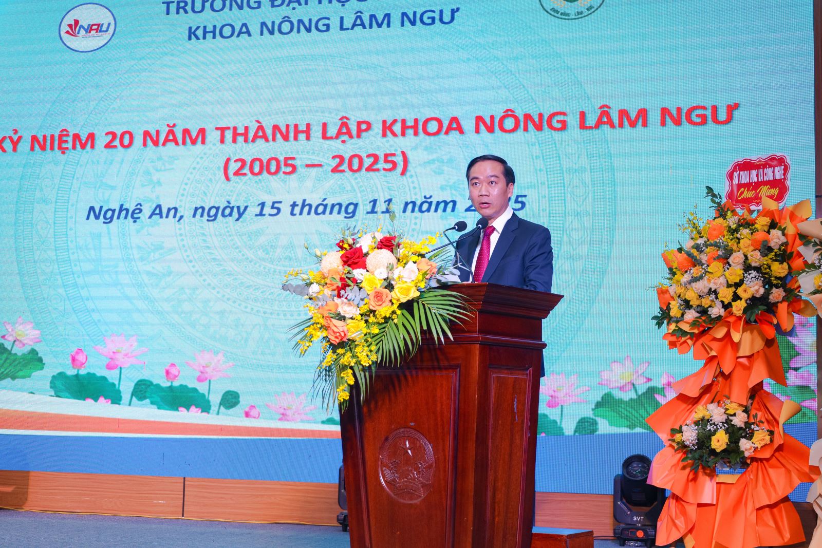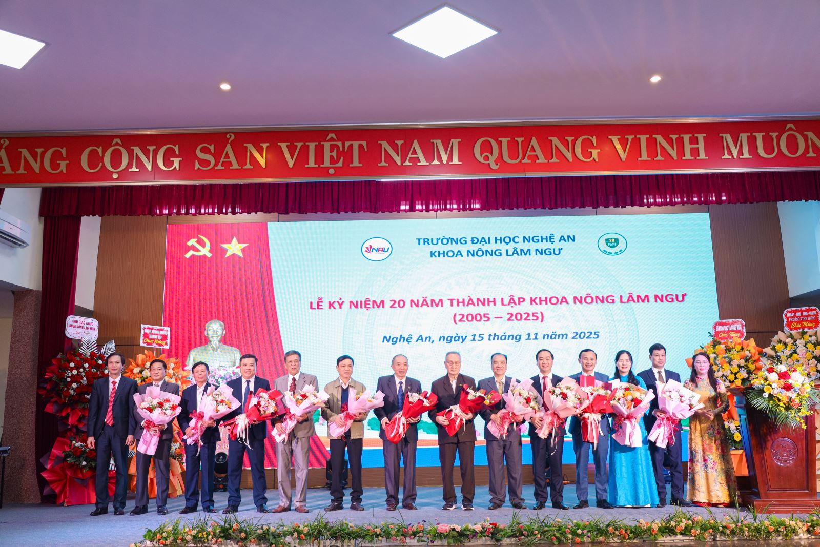 Ngày 15/11/2025, Khoa Nông Lâm Ngư – Trường Đại học Nghệ An đã long trọng tổ chức Lễ kỷ niệm 20 năm thành lập trong không khí trang trọng, ấm áp và đầy tự hào. Buổi lễ là dấu mốc quan trọng, ghi nhận hành trình hai thập kỷ xây dựng, trưởng thành và đóng góp cho sự phát triển nông nghiệp – nông thôn tỉnh Nghệ An và khu vực Bắc Trung Bộ.