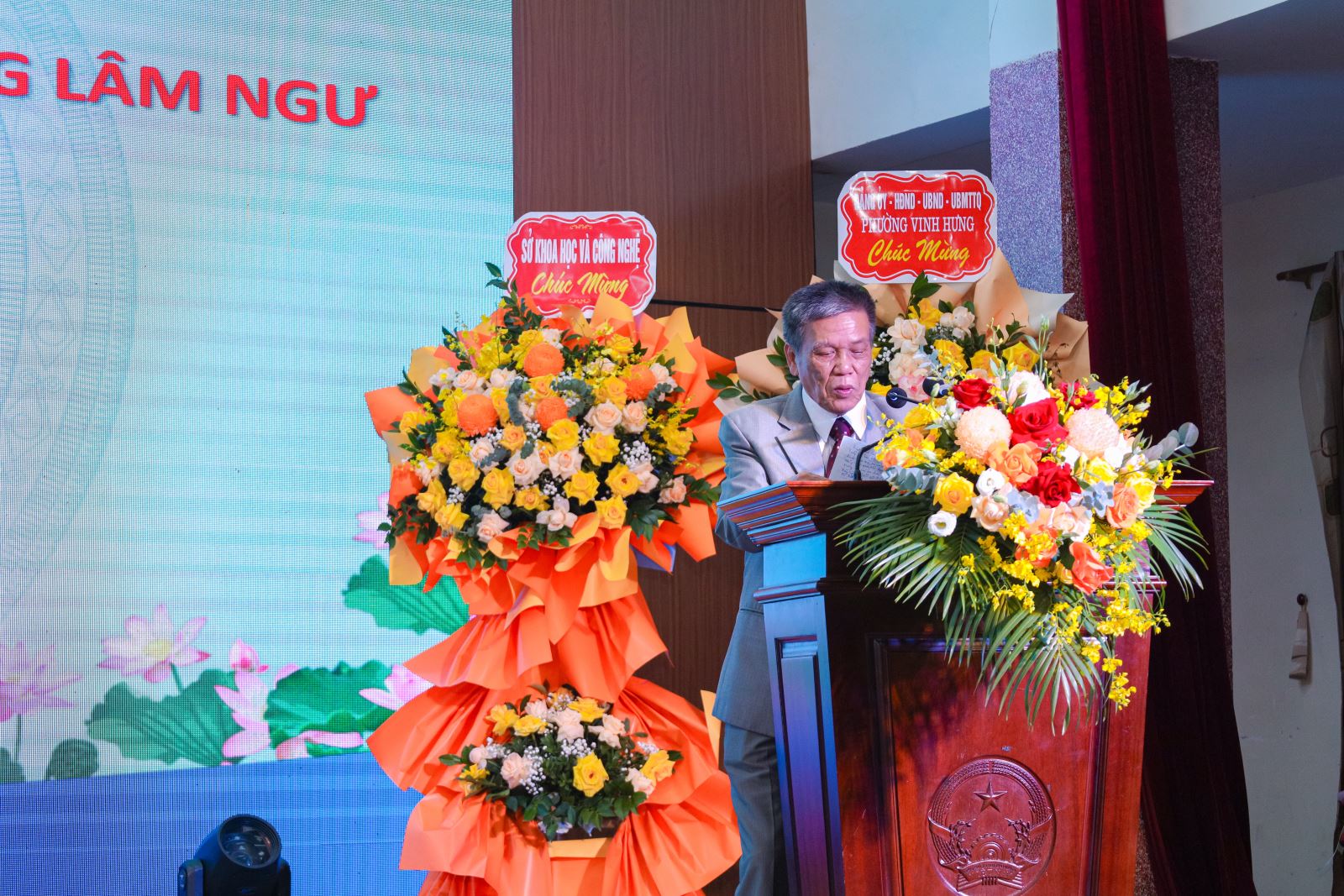 Chương trình vinh dự đón tiếp sự hiện diện của nhiều đại biểu khách quý, trong đó có TS. Thái Minh Tuấn – Phó Văn phòng UBND tỉnh Nghệ An; ĐC. Nguyễn Danh Hùng – Phó Giám đốc Sở Nông nghiệp và Môi trường; ĐC. Nguyễn Khắc Lâm – Phó Giám đốc Sở Khoa học và Công nghệ; ĐC. Hồ Thị Châu Loan – Phó Giám đốc Sở Giáo dục và Đào tạo; ĐC. Trần Khánh Thục – Giám đốc Sở Ngoại vụ; ĐC. Lê Văn Ngọc – Tỉnh ủy viên, Bí thư Đảng bộ huyện Tân Kỳ cùng lãnh đạo UBND phường Vinh Phú, UBND phường Vinh Hưng và đại diện nhiều sở, ban ngành. Sự kiện cũng có sự tham dự của đông đảo các nhà khoa học, chuyên gia đến từ các viện, trường đại học trên cả nước như TS. Trịnh Đức Toàn – Phó Viện trưởng Viện Nông nghiệp Bắc Trung Bộ; PGS.TS Nguyễn Hữu Nam, PGS.TS Sử Thanh Long, PGS.TS Nguyễn Bá Hiên, PGS.TS Bùi Hữu Đoàn, PGS.TS Chu Đức Thắng, TS. Nguyễn Bá Tiếp (Học viện Nông nghiệp Việt Nam); PGS.TS Nguyễn Huỳnh Phán – Viện Nghiên cứu và Công nghệ mới; PGS.TS Phan Thị Thanh Huyền – Hội Khoa học Đất Việt Nam; PGS.TS Lê Xuân Trường – Đại học Nông Lâm Thái Nguyên; TS. Trần Hùng – Chi cục trưởng Chi cục Chăn nuôi Thú y Hà Tĩnh; TS. Lê Văn Quang – Đại học Hà Tĩnh; TS. Nguyễn Thế Hùng – Đại học Quảng Bình; ĐC. Lê Đình Huệ – Chi cục trưởng Chi cục Thú y Vùng 3; TS. Nguyễn Đình Hải – Trường Đại học Lâm nghiệp cùng nhiều doanh nghiệp, hợp tác xã và các thế hệ cựu sinh viên.