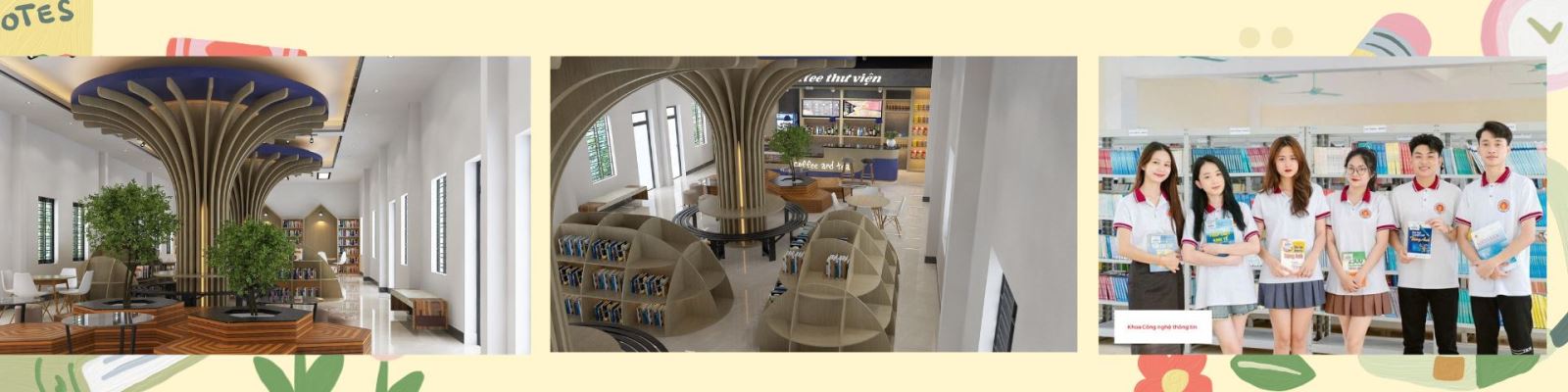 Thư viện: Được thiết kế rất sáng tạo, hiện đại mang lại sự thoải mái cho sinh viên. Tại thư viện, sinh viên được tiếp cận với số lượng tài liệu, đầu sách đa dạng, phong phú bằng Tiếng Việt và Tiếng Anh thuộc nhiều chủ đề khác nhau được cập nhật thường xuyên cả bản cứng và bản mềm. Thậm chí, thư viện cũng là một background check-in siêu xịn xò cho các tín đồ mê “sống ảo”. Bên cạnh đó, sinh viên được hỗ trợ và tư vấn bởi đội ngũ nhân viên thủ thư toàn thời gian và được phục vụ tra cứu và nghiên cứu tài liệu bởi hệ thống máy tính hiện đại.