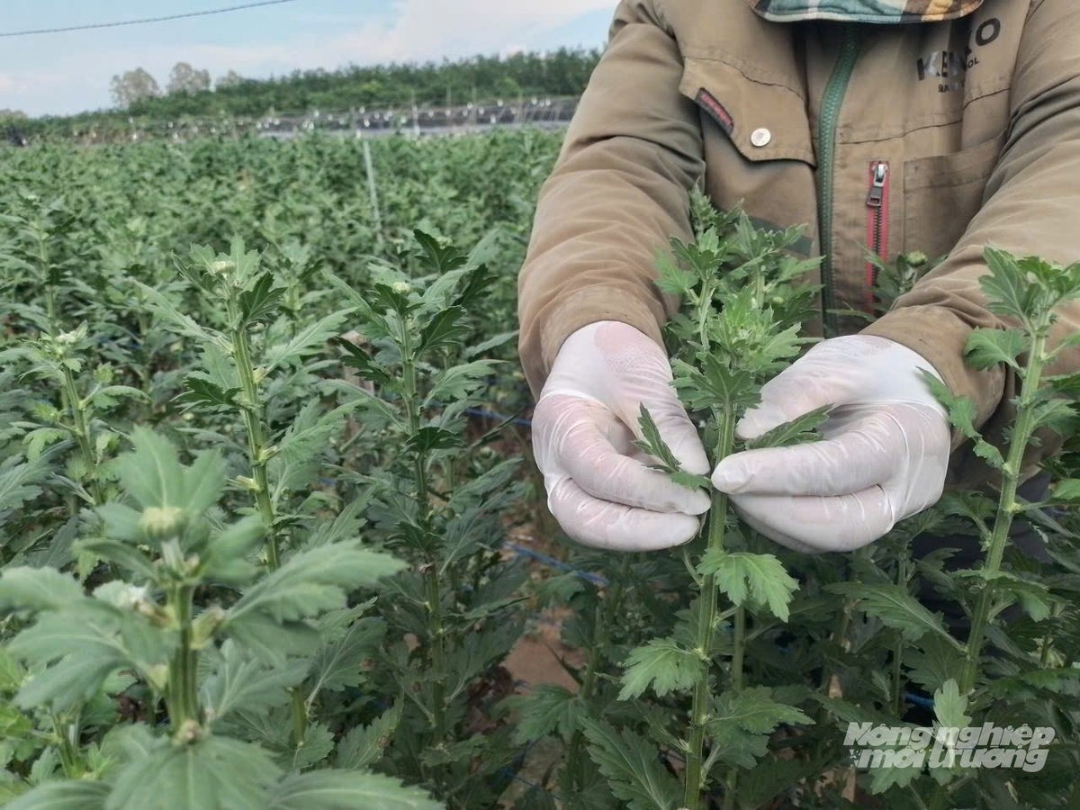 Tương tự, bà Phan Thị Lan trồng hơn 2 sào hoa cúc trong mô hình cũng dự kiến thu được trên 40 triệu đồng. Theo bà Lan, khó nhất trong sản xuất hoa cúc vụ hè thu là vào đầu vụ hay có mưa bão, nắng gắt, ngày dài, nhiệt độ không khí cao khiến ruộng dễ bị ngập úng hoặc độ ẩm đất quá cao. Điều này khiến cây cúc phát triển không đồng đều, nhiều lá và mầm nhánh, sớm ra hoa, cành hoa ngắn và gầy, bị nhiễm nhiều sâu bệnh, nhất là cháy lá và bệnh héo xanh do vi khuẩn (hiện chưa có thuốc đặc trị).