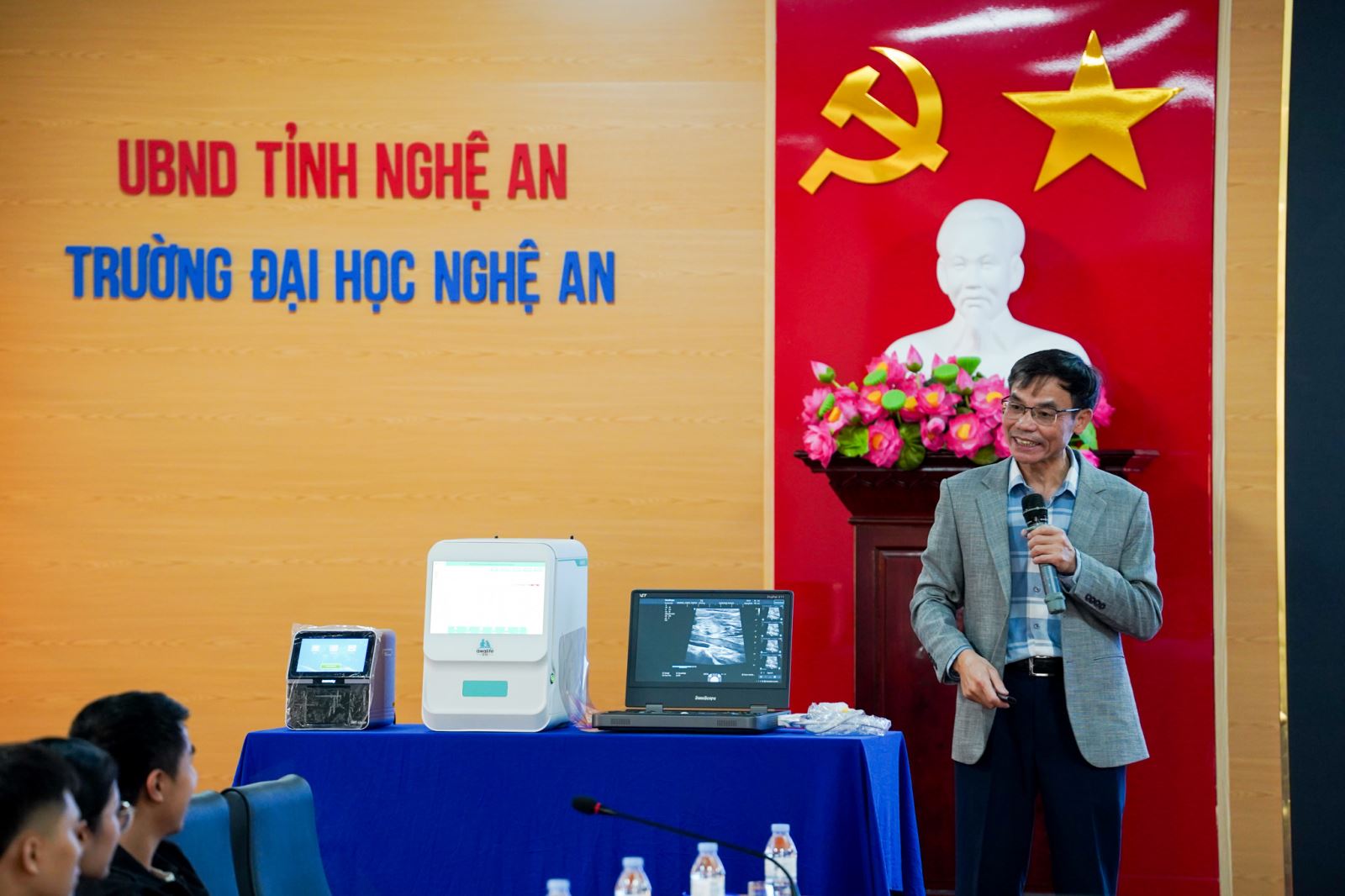 Về phía Trường Đại học Nghệ An có TS. Hoàng Đình Hải – Trưởng phòng Quản lý Khoa học và Hợp tác Quốc tế; Ban Chủ nhiệm Khoa Nông Lâm Ngư, toàn thể giảng viên Tổ Thú y và nhiều giảng viên ở các bộ môn liên quan cùng hơn 100 sinh viên ngành Thú y các khóa K9 đến K12.