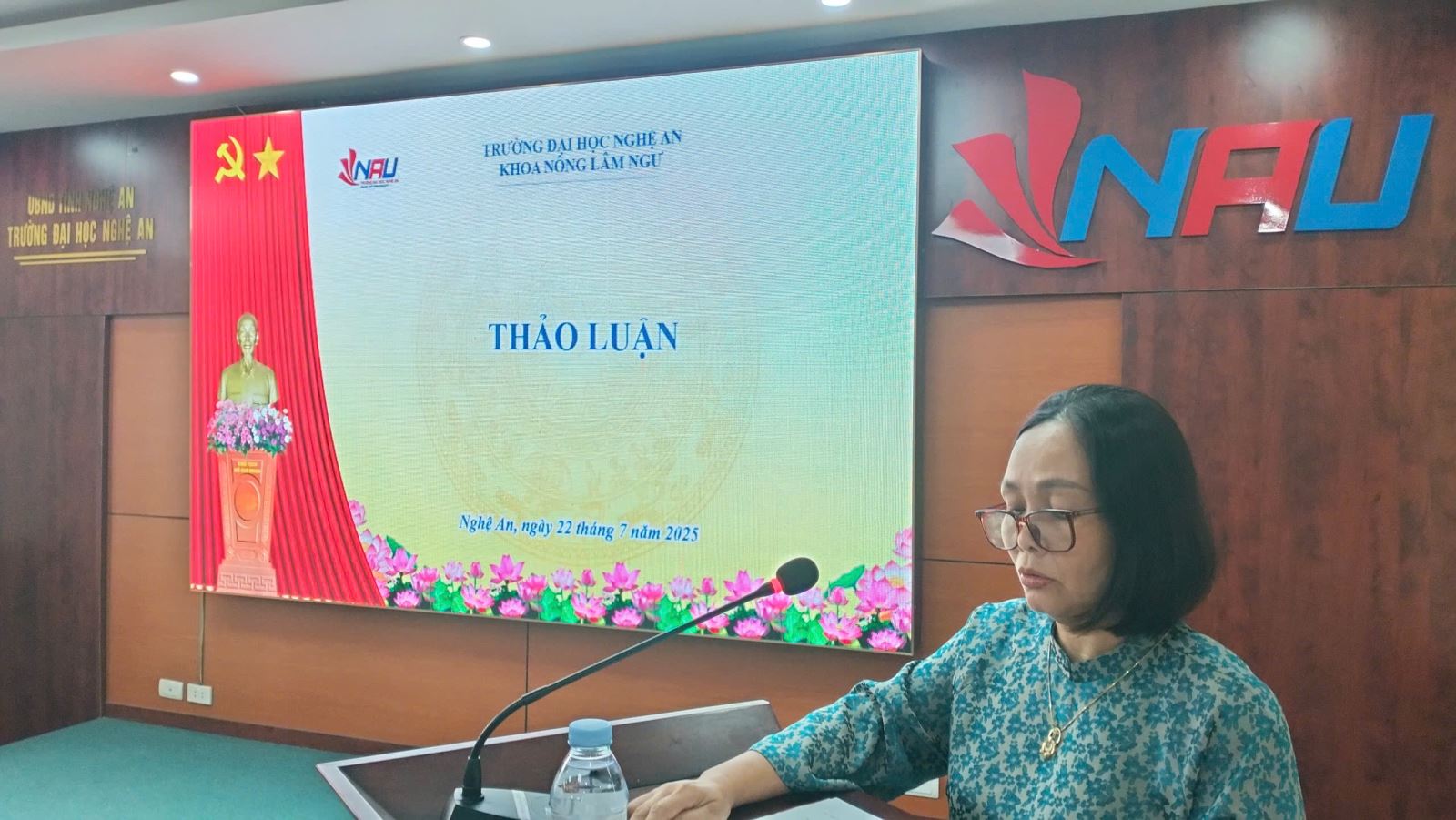 TS. Võ Thị Hải Lê - Phó trưởng Khoa Nông Lâm Ngư đọc tham luận trong hội nghị