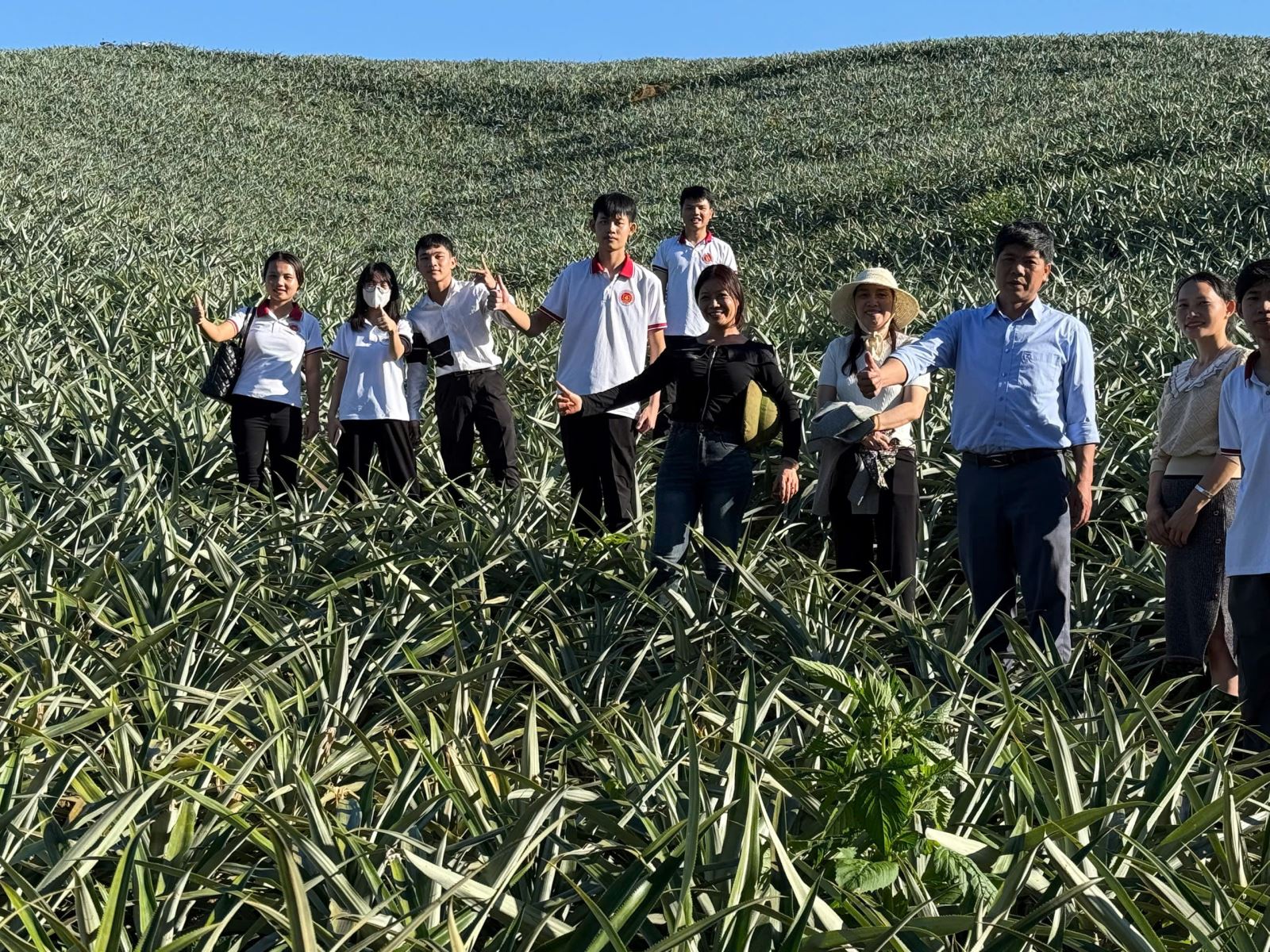 Sinh viên học thực tế tại vườn sản xuất dứa