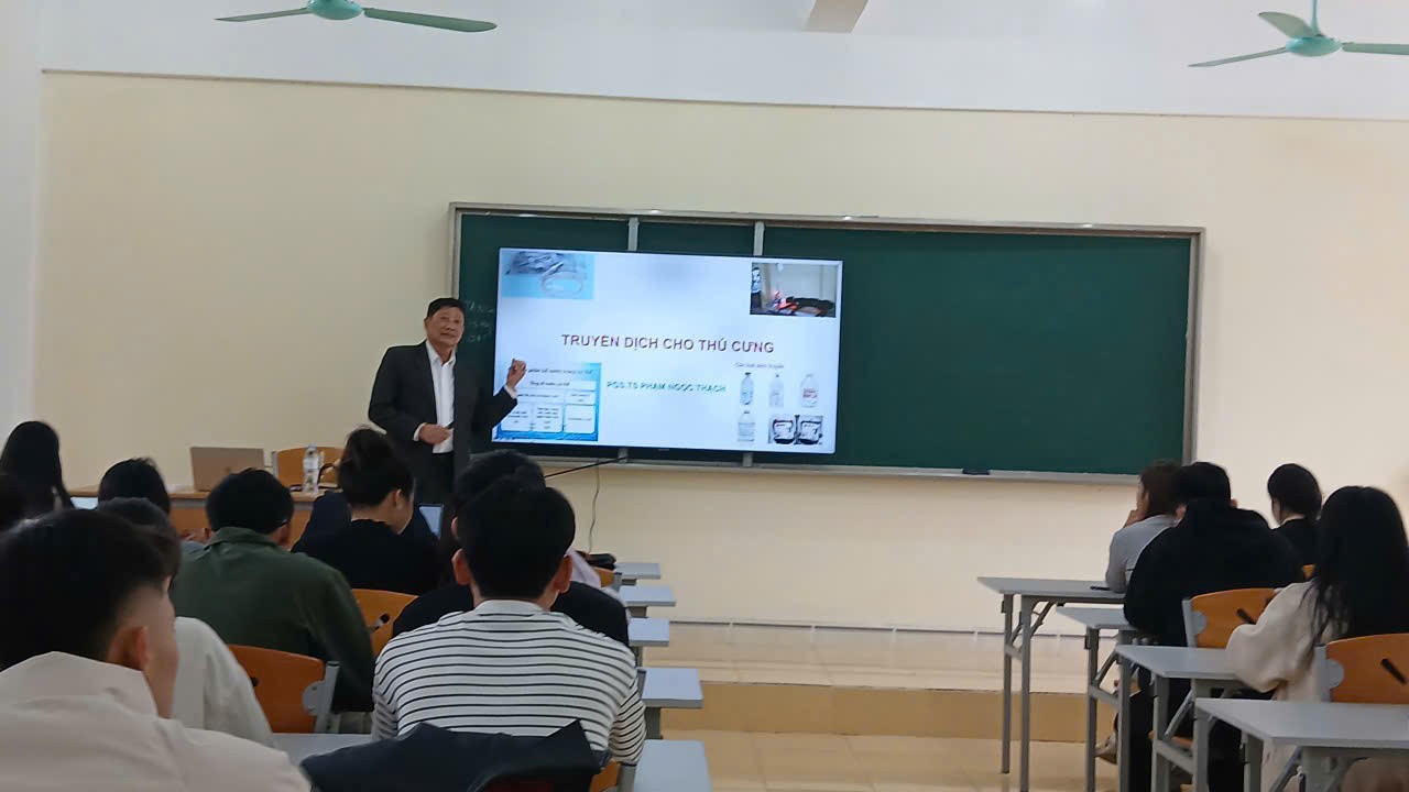 Những nhận định chuyên sâu, gần gũi và giàu tính thực tiễn của thầy đã mang đến nguồn cảm hứng lớn cho sinh viên, đồng thời giúp các em định hướng rõ hơn con đường nghề nghiệp trong lĩnh vực thú y hiện đại. Hai seminar được tổ chức tại Cơ sở 3 – Khoa Nông Lâm Ngư, thu hút sự tham gia của đông đảo giảng viên, sinh viên Thú y các khóa K9, K10 cùng nhiều thầy cô và cán bộ đang công tác trong ngành.