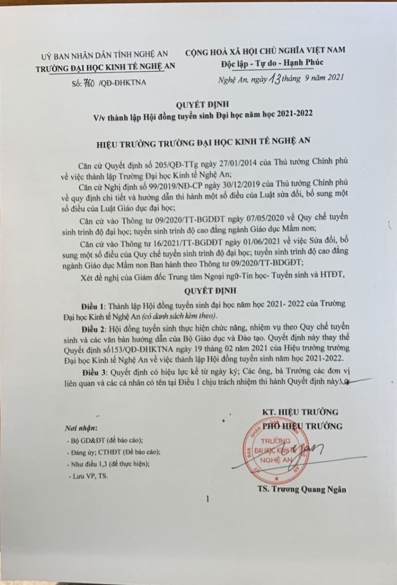 Quyết định về việc Thành lập Hội đồng tuyển sinh Đại học năm học 2021-2022 13/09/2021 10:01 4268 lượt xem