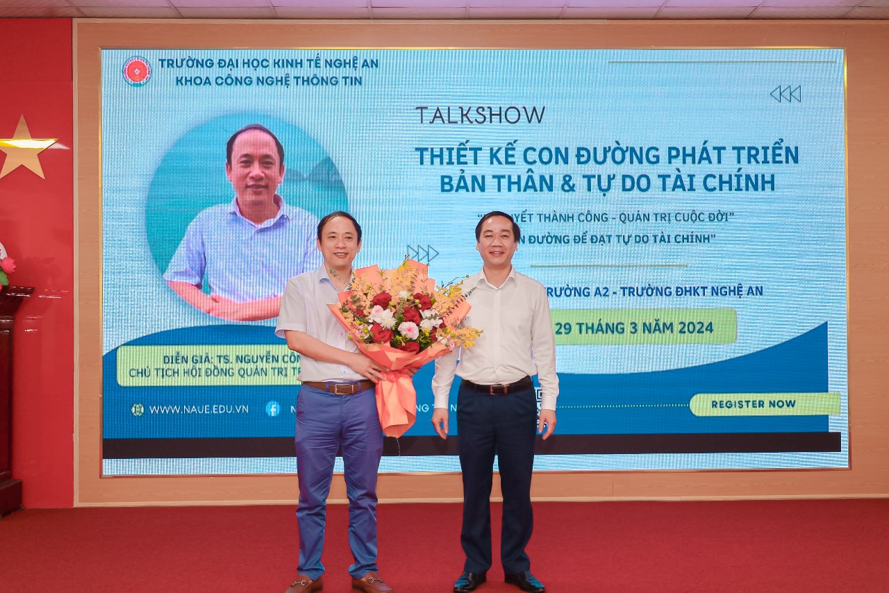 Thấu hiểu năng lực, tính cách, sở thích, điểm mạnh - điểm yếu,… của bản thân là yếu tố đặc biệt quan trọng để có những lựa chọn sáng suốt trên con đường sự nghiệp. Đó cũng là vấn đề chính được các khách mời chia sẻ, giải đáp tại buổi talkshow “Chia sẻ về kinh ngiệm phát triển bản thân và thiết lập mục tự do tài chính cho Sinh viên”. tại Hội trường A2, Trường Đại học Kinh tế Nghệ An với sự tham gia của hơn 200 sinh viên khoa Công nghệ thông tin.