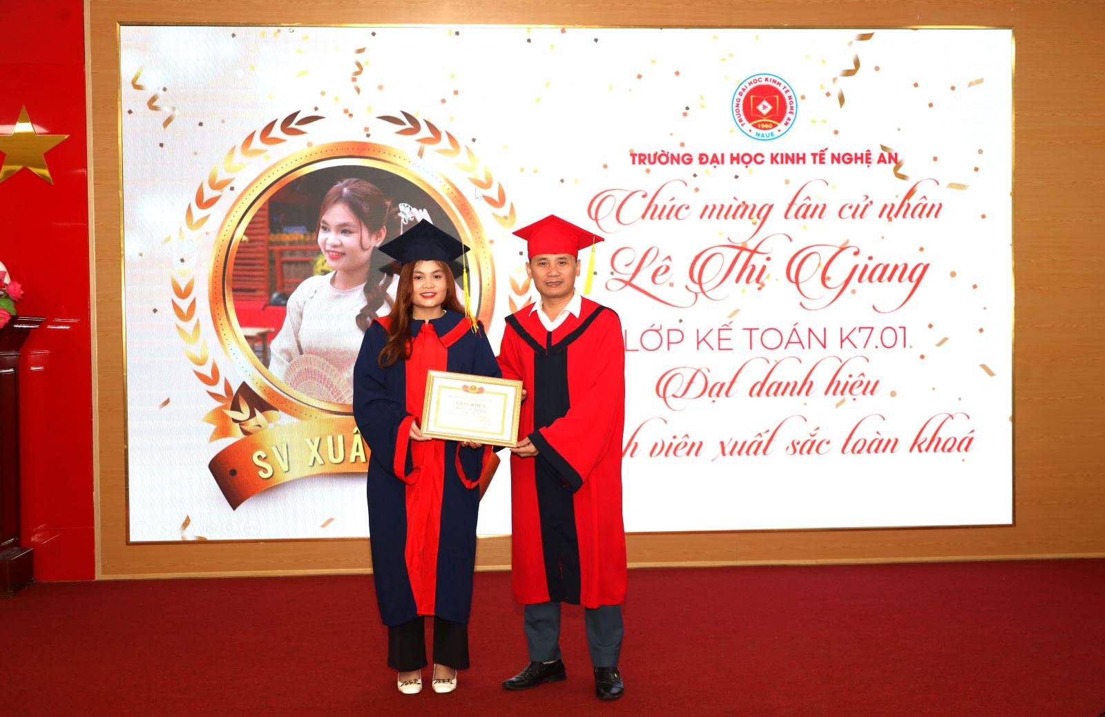 TS. Trương Quang Ngân - Phó Hiệu trưởng trực tiếp trao Giấy khen cho sinh viên đạt danh hiệu: Sinh viên xuất sắc toàn khóa