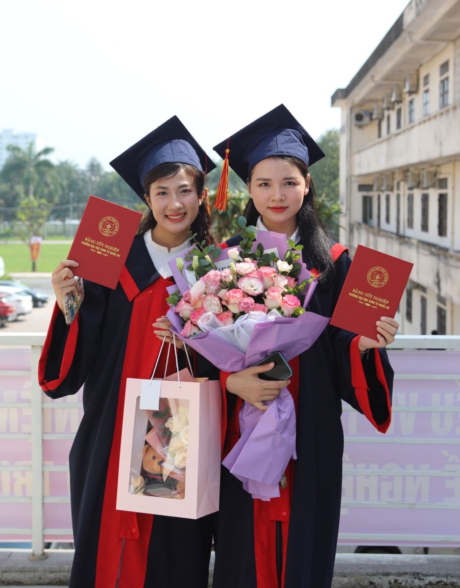 Hà Thị Thắm - tân Cử nhân khoa Kế toán kiểm toán bày tỏ: “Bản thân chúng em cũng chẳng phát hiện mũ đội lệch, vạt áo chưa thẳng… nhưng thầy cô thì nhìn ra và tận tình chỉnh trang sắc phục, giúp chúng em đội lại mũ cho đúng; điều phối cánh gà và sân khấu để chúng em có một hình ảnh chỉn chu, đẹp đẽ nhất tại Lễ trao bằng tốt nghiệp”.