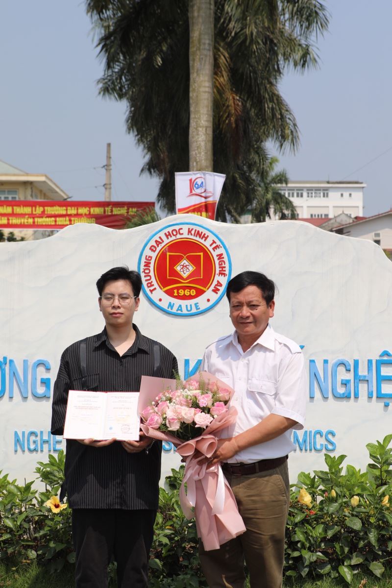 Hồ Hường – tân Cử nhân khoa QTKD xúc động: “Đối với em, Thầy/Cô ở NAUE chính là “người mẹ thứ hai” của em. Các thầy/Cô luôn tận tâm và sát cánh cùng học trò trong mọi câu chuyện đời sống hay gian truân trong học tập. Cảm ơn Thầy/Cô vì đã đồng hành cùng em và các bạn trong trong suốt một quá trình dài. Xin lỗi vì đã khiến Thầy/Cô luôn phải bận tâm và đau đáu lo cho những “đứa con” tốt nghiệp đúng hạn. Rời xa mái trường và thầy cô, em biết sẽ có nhiều khó khăn. Nhưng chắc chắn em sẽ vượt qua bởi cô từng dặn em rằng: Hãy cứ tìm nguồn cảm hứng để vượt qua mọi khó khăn…”