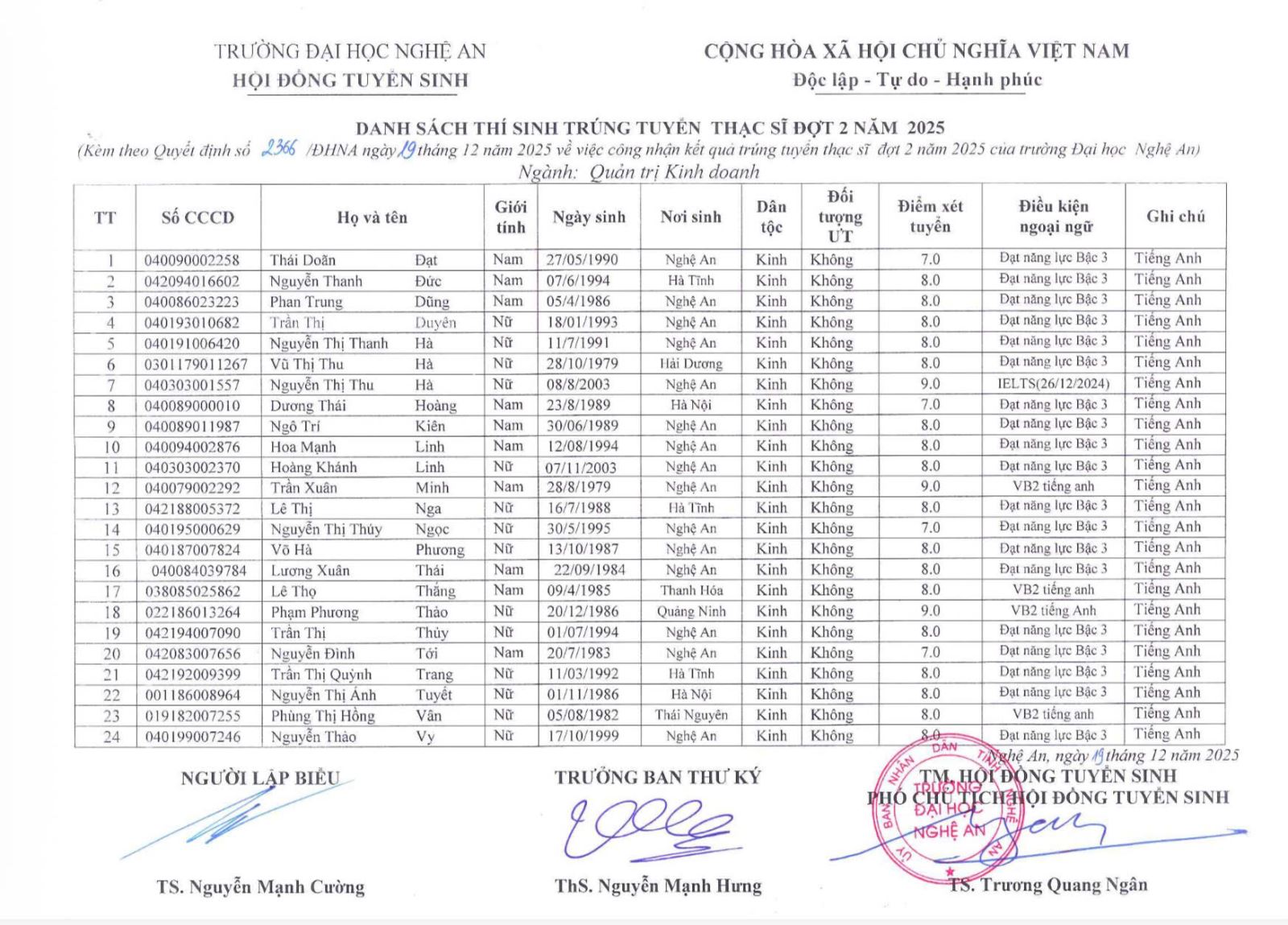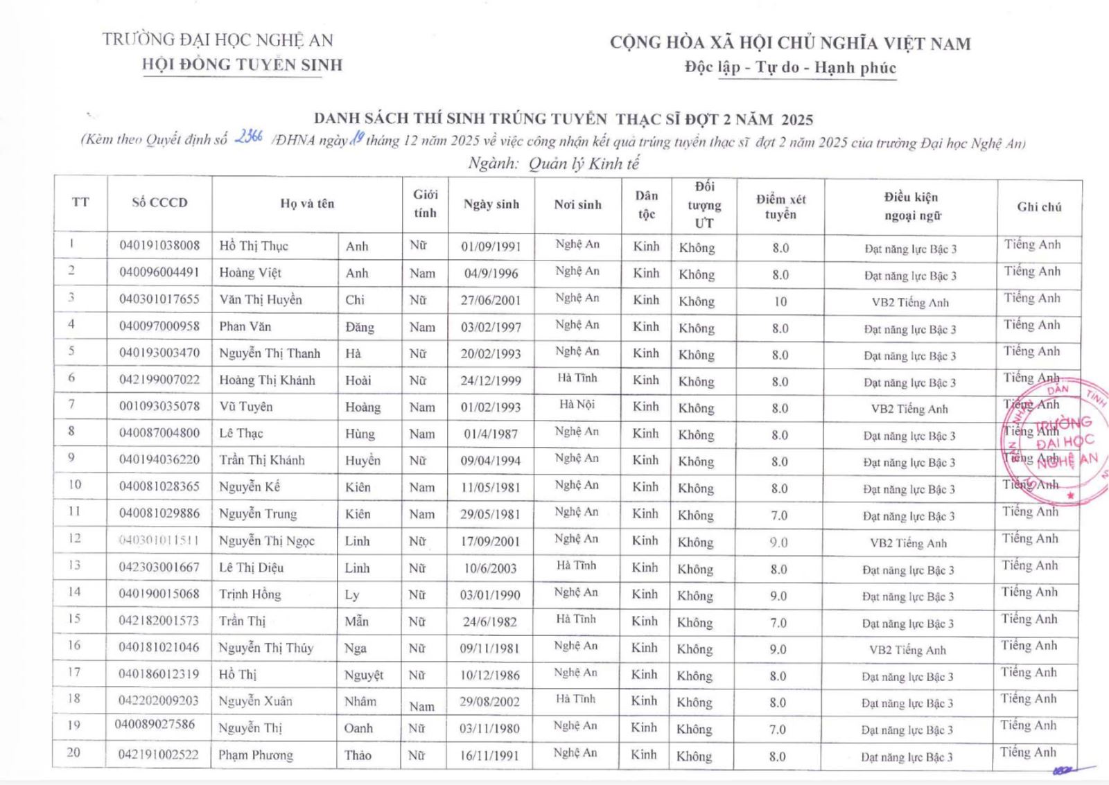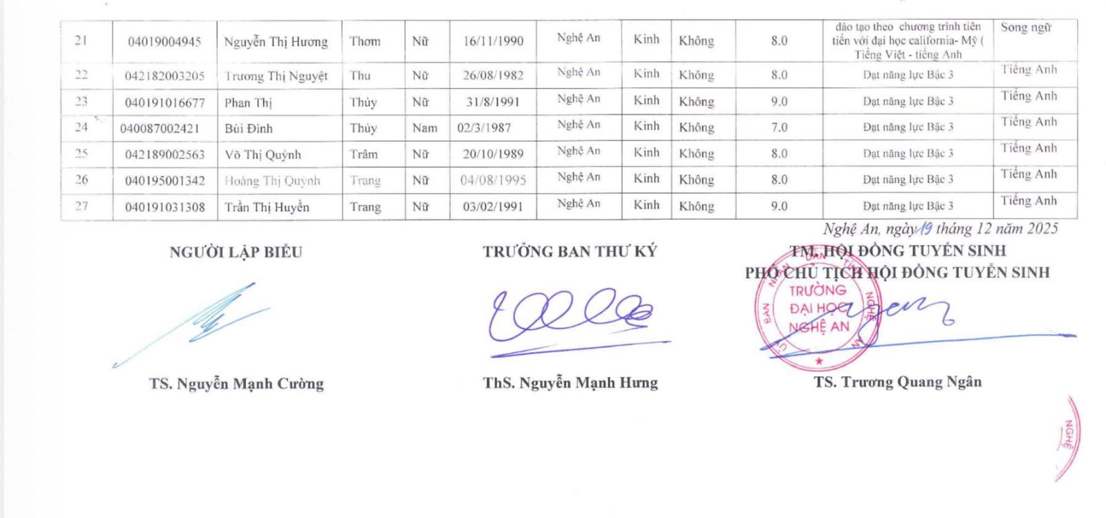Quyết định về việc phê duyệt danh sách trúng tuyển Thạc sĩ đợt 2 năm 2025 19/12/2025 02:14 189 lượt xem