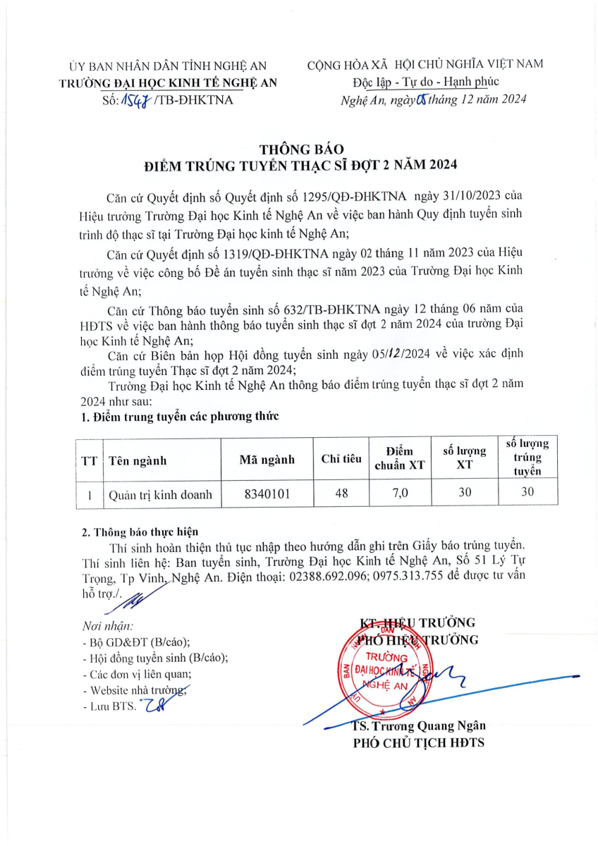 2. Thông báo Điểm trúng tuyển thạc sĩ đợt 2 năm 2024